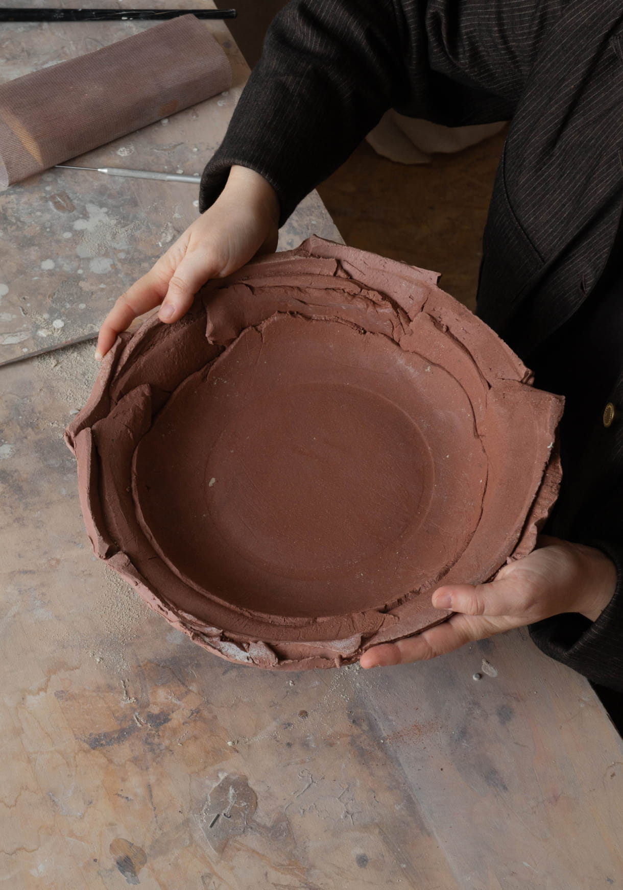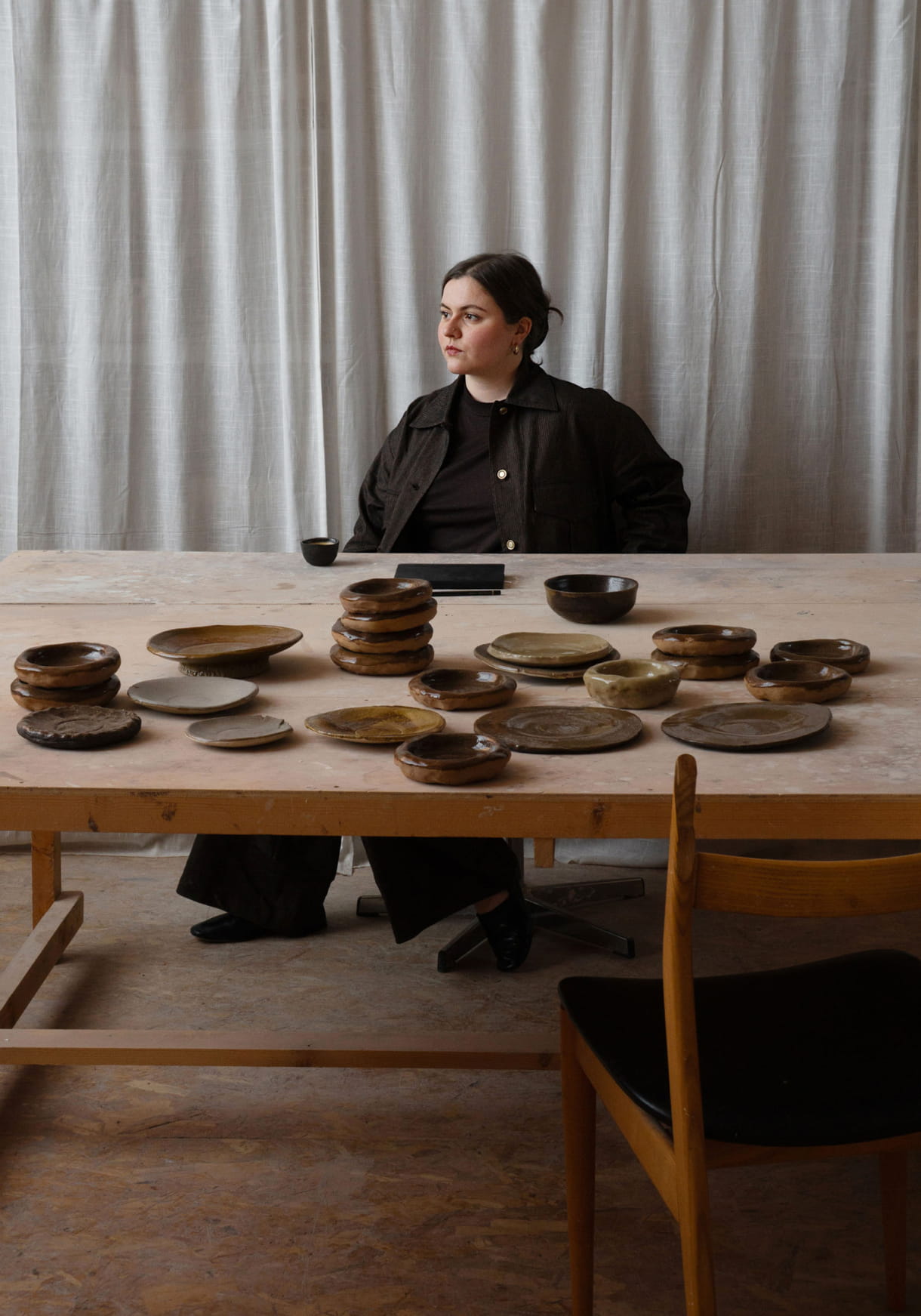 Actuellement, je travaille sur de nouvelles collections d’assiettes pour Sessùn, et notamment sur un projet autour de grands centres de table ou de plats. Ces objets se dessinent dans des volumes plus imposants, car je viens de faire l’acquisition d’un plus grand four à l’atelier, me permettant d’imaginer de nouvelles formes, et cela est très excitant. En parallèle, je serai à Collectible Bruxelles pour la nouvelle section Tablescapes. Je continue de travailler pour le restaurant Datil, de Manon Fleury, et nous imaginons une nouvelle collection avec la Galerie Tabouret à Minorque.