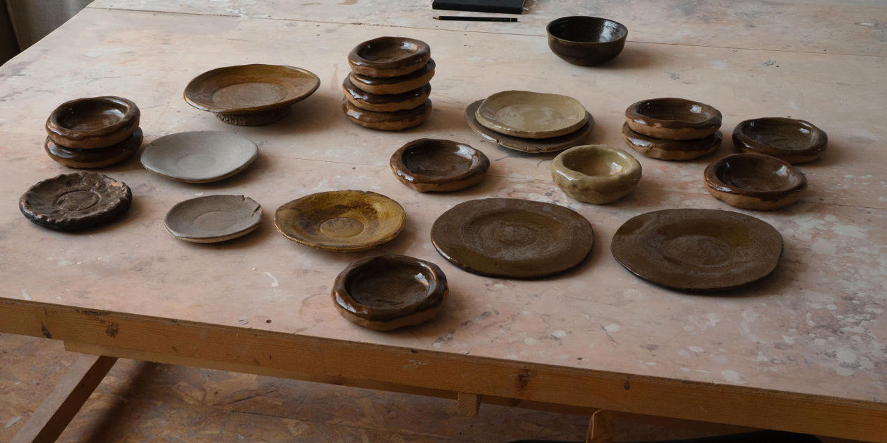 La terre est la matière qui accueille la nourriture, parfaite pour l’art de la table, pour ses propriétés physiques et thermiques, pour le contact alimentaire... Je me suis donc formée seule, en essayant de comprendre cette matière et son processus. Petit à petit, ma pratique s’est ancrée dans l’objet de table, avec un penchant pour les assiettes et les carafes.